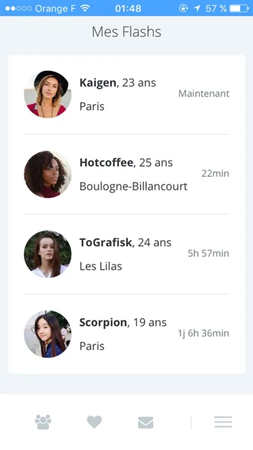 Vous pouvez rechercher, flasher et discuter avec des membres de façon totalement anonyme et gratuite.