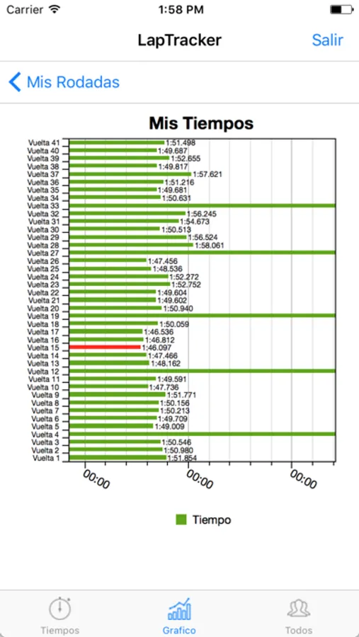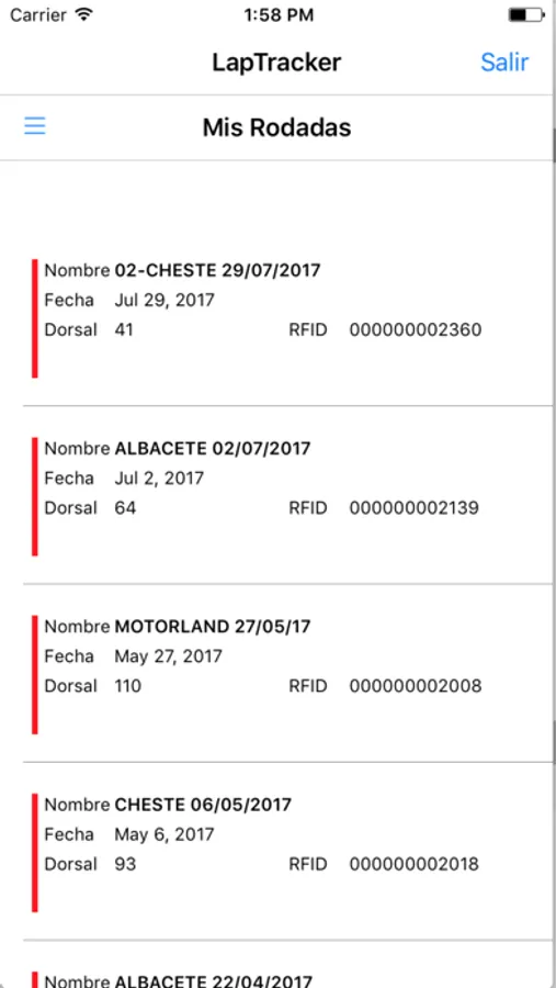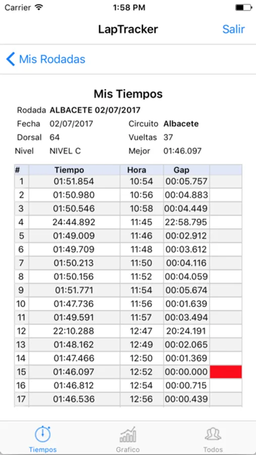 LapTracker2 te permite acceder a los tiempos de todas tus rodadas registradas con el sistema GroupChrono de medición de tiempos por vuelta.