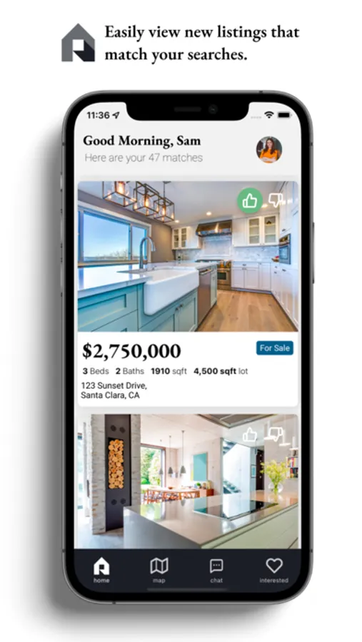 -“Interested” and “not interested” buttons consolidates those listings in a list view