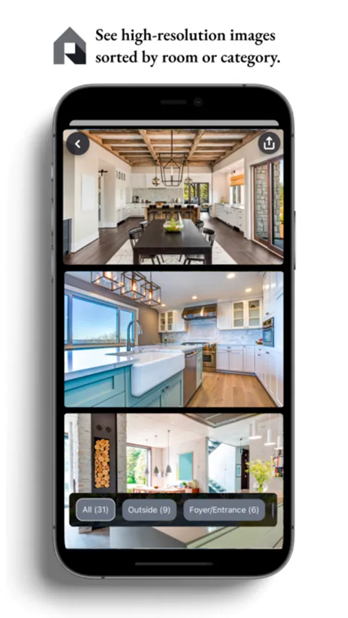 -Filter Images by room or category, ie: kitchen, bathrooms, outside, etc.