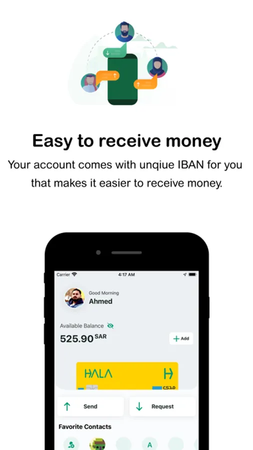 You can pay within a click of a button to stores and transfer money to your Hala contacts.