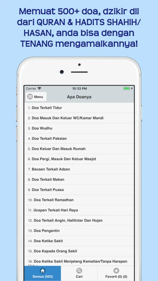•Anda punya buku kumpulan doa/dzikir lengkap, tapi malas membukanya, harus mencari di daftar isi, tidak selalu dibawa karena tebal/berat, dll?