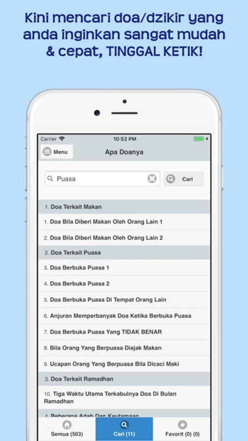 •Fitur "Cari"! Mencari doa/dzikir yg anda inginkan, tinggal ketik!