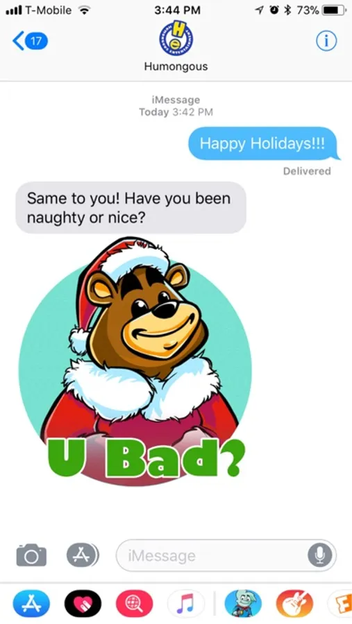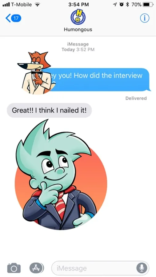 Join Pajama Sam, Freddi Fish, Spy Fox, Fatty Bear, Buzzy and Luther for HUMONGOUS messaging fun! You get 15 stickers to show off your Humongous Entertainment love to all your friends and surprise everyone when Pajama Sam, Spy Fox and their friends suddenly appear in your conversation.