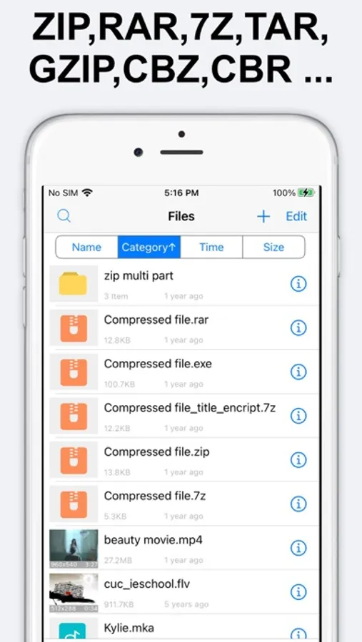 - Open and decompress compressed file formats: ZIP, RAR, 7zip, TAR, GZIP,GZ, Bzip2, LhA, CAB, LZX,BZ2, BIN, LZMA, ZIPX, ISO, ACE, AES, MSI,CBZ,CBR……