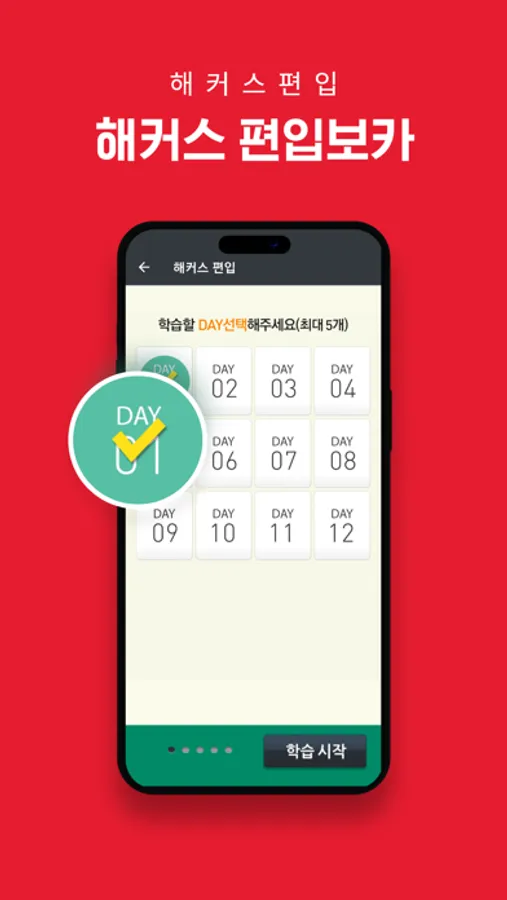 2. 취약한 Day 완벽 학습을 위해 Day 5개까지 선택하여 게임 가능