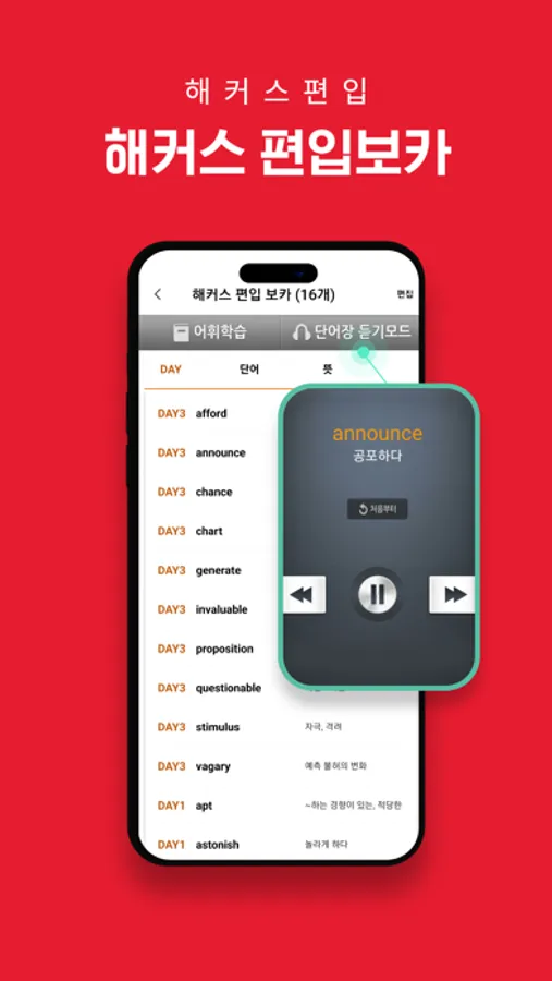 해커스편입 어플로 더 쉽게! 더 빠르게! 더 편하게! 어휘 암기 학습하세요.
