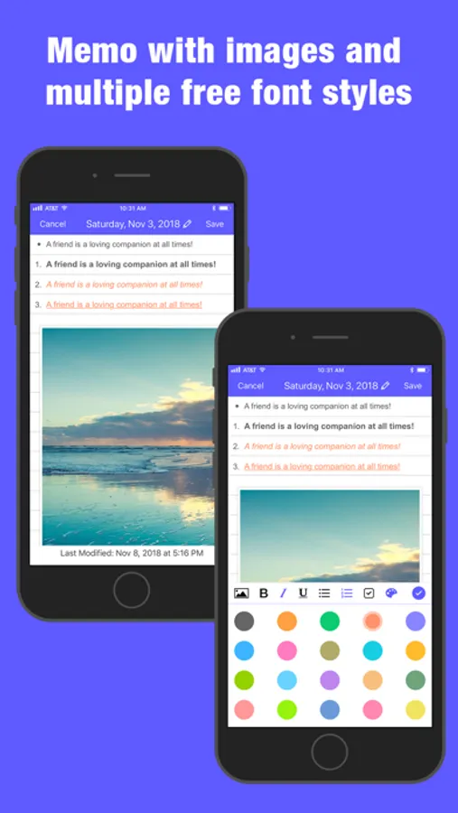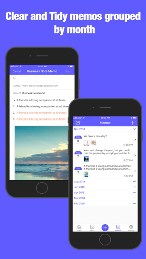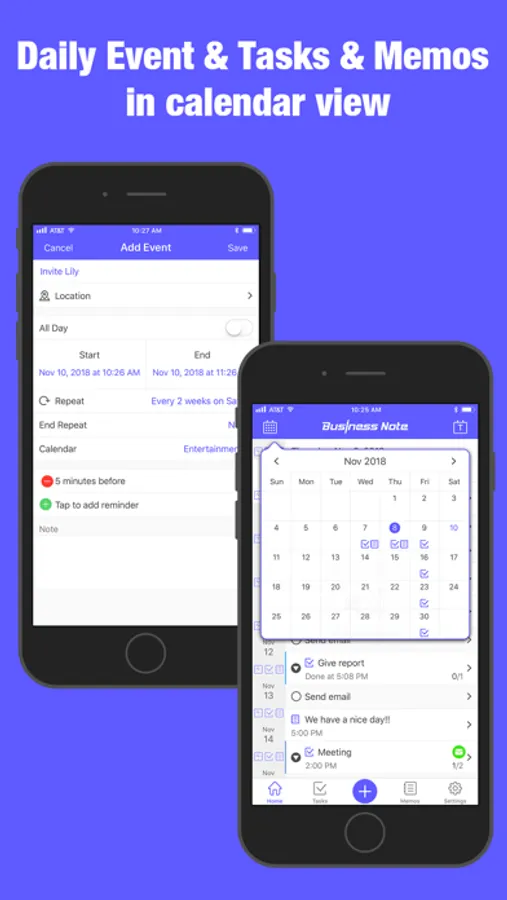 You can check the notes by list or calendar, and sync the data with Calendars also.