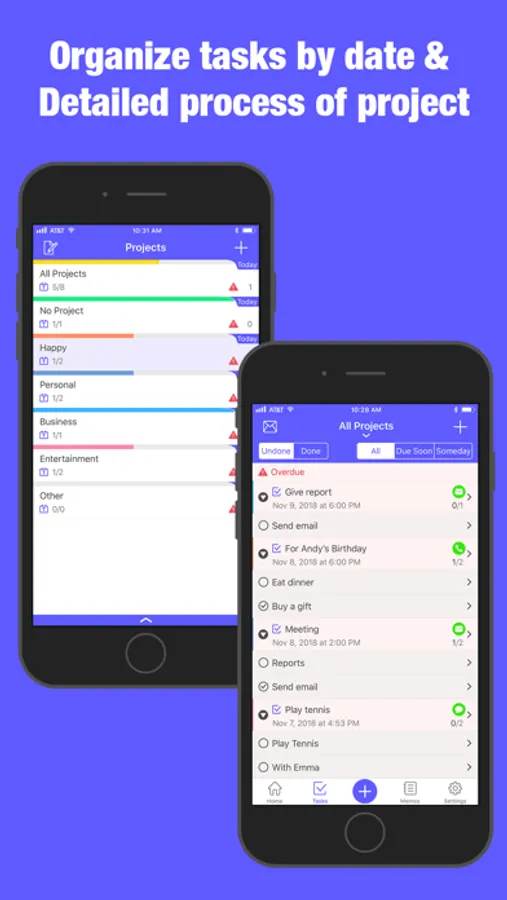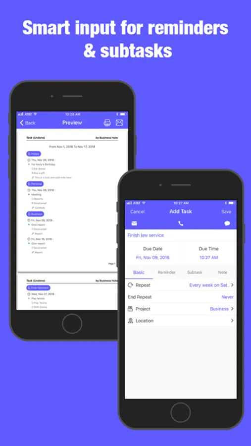 ⁃ Manage tasks with time, location, reminder time, repeat cycle and note field.
