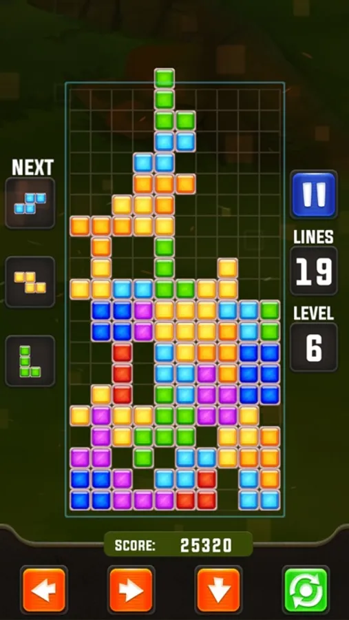 • Drag shapes, blocks and move them to match the grid on the screen • The game starts at a slow speed, and the more points are scored, the faster the speed • Do not worry! Time is unlimited! The game will end if the block or block hits the top • Use the arrow keys as appropriate: Arrow Keys: Rotate the blocks. Left arrow key: move left. Right Arrow: Move to the right. Down Arrow: Falling Speed