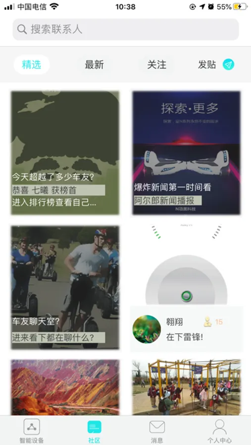 2.社区模块:可以在社区里面发表和畅聊各种有关平衡车的话题,探讨有关平衡车的话题。上传一些关于有关平衡车有趣的简短视频等