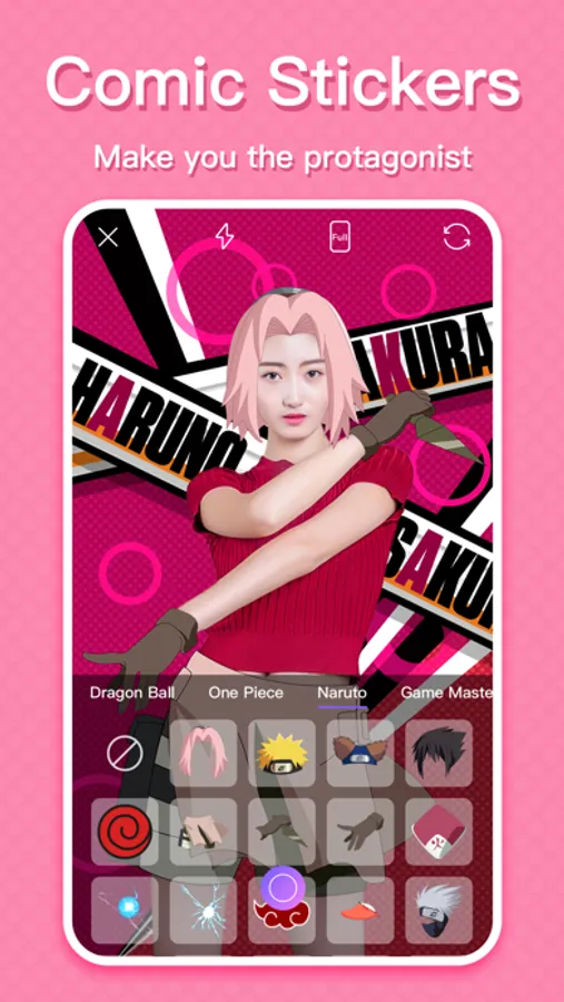 The hand-drawed stickers of well-known comic IPs such as One Piece, Naruto, Conan, Yu-Gi-Oh, Dragon Ball, etc are continuously updating, helping you become a cosplay master.