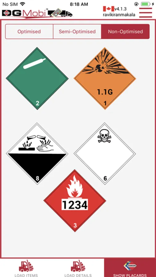 At each pick-up and drop-off system, enter or remove the load and DGMobi recalculates placarding