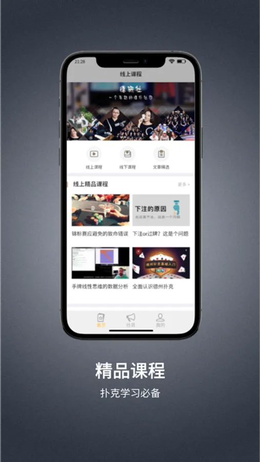 APP为社员提供精品免费德扑教学课程和社团精彩活动信息。