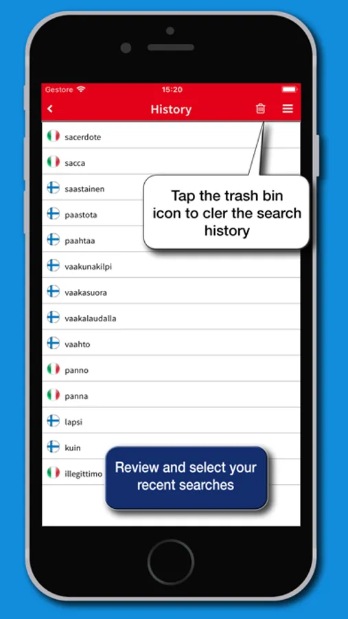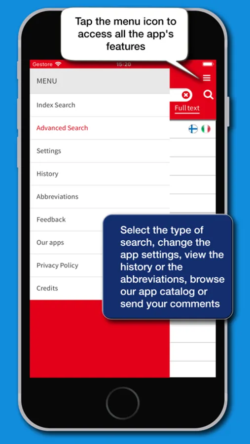 This app provides the Hoepli edition of the Finnish-Italian/Italian- Finnish Dictionary from Lorenzo Amato, Katia Brunetto, and Lena Dal Pozzo. With over 25,000 headwords graphically displayed in a clear and immediate way, the dictionary is characterized by a rich and updated content, making it a user-friendly and high-quality dictionary, a step higher than other dictionaries of the same category.