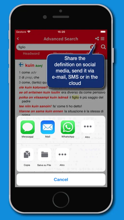• Sharing the definitions using the features available in the device, such as social media, e-mail, SMS, etc.
