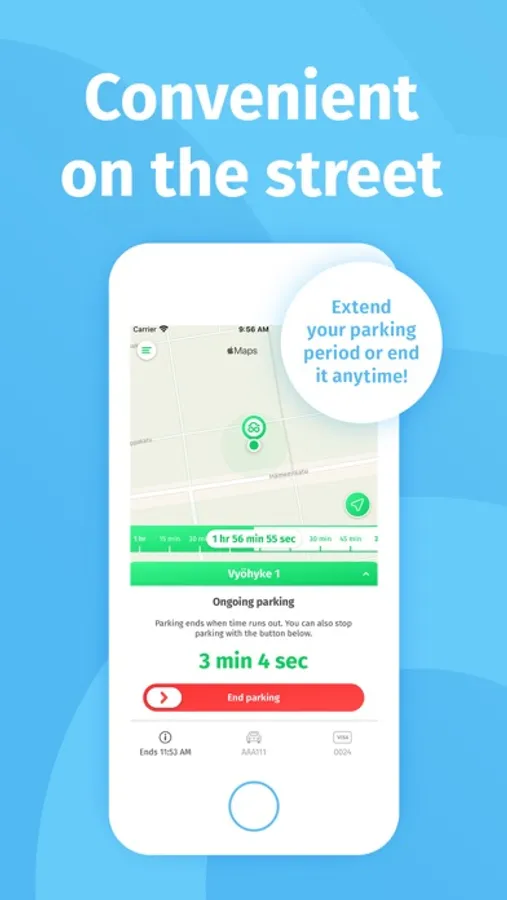 • On the streets, you park with the application without coins or cards, parking fees will be charged to your payment card afterwards.