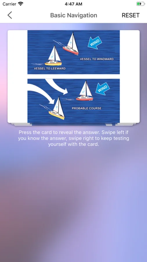 This app's core feature is the use of flip card style learning by which an image or prompt is displayed and on the reverse side of the image, the answer awaits in case the user does not know the appropriate answer. It includes buoyage, lights, day shapes, phonetic alphabet and an additional weather tool so you can check the forecast from within the application.
