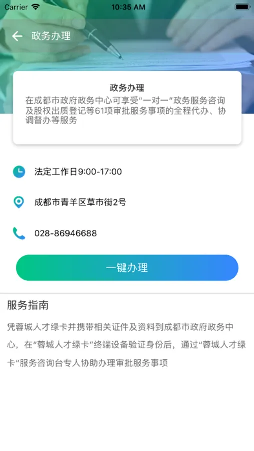 "蓉城人才综合服务平台"依托务实管用、富有特色的成都人才绿卡制度体系和运行体系,聚焦人才实际需求,为人才提供各项便捷服务。