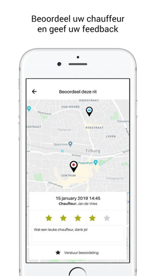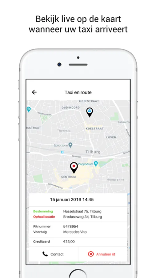- Volg de taxi op de kaart voor precieze aankomsttijd