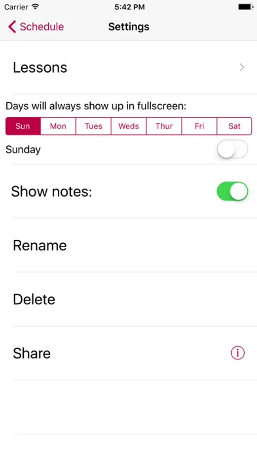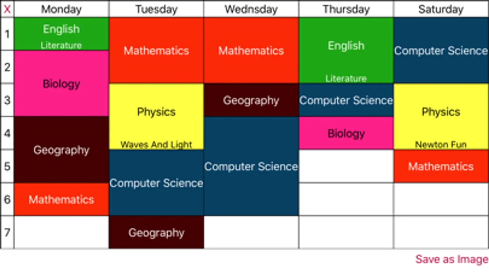Create and share your schedule with others, create lessons with colors and notes, and with a simple interface sort them out through the days.