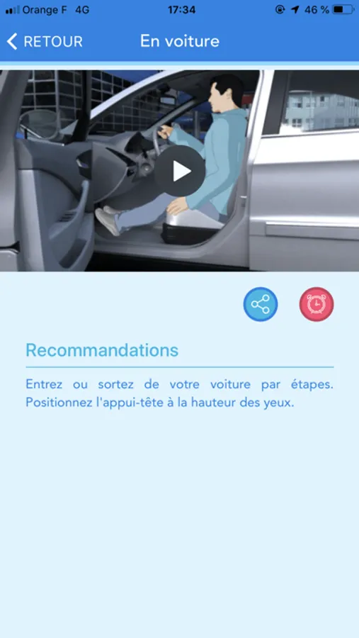 Visionnez des vidéos de bonnes postures pour le bureau, le jardin, la voiture… Des conseils pour adopter les bonnes postures et éviter les mauvaises postures. En fonction de vos besoins au quotidien, vous pouvez programmer des rappels de bonne posture pour ne plus oublier comment bien se tenir.