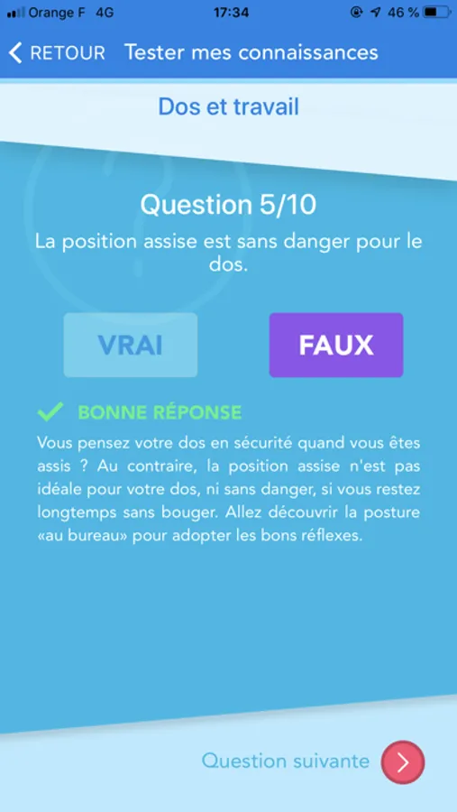 Cinq quiz sur le dos vous permettent de bousculer vos idées reçues et vous apportent des informations concrètes sur le dos. Sous forme de « vrai/faux », vous découvrez la bonne réponse sous chaque question.