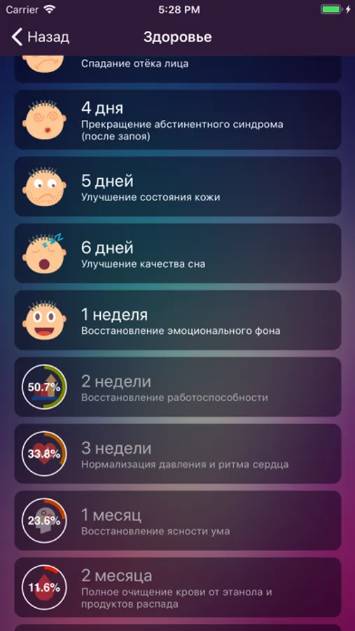 Приложение позволяет контролировать время, прошедшее с момента последнего употребления алкоголя.