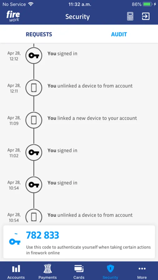 • Use the firework app to authenticate yourself when working with fire.com online;