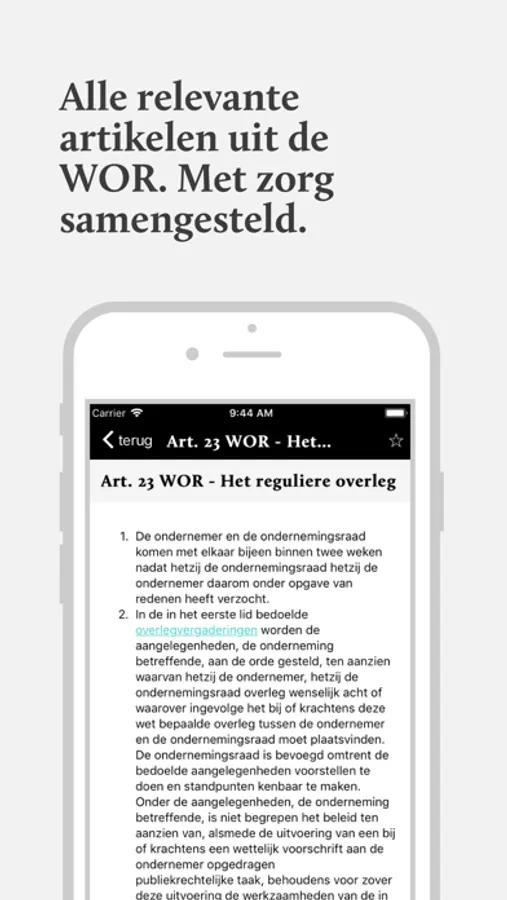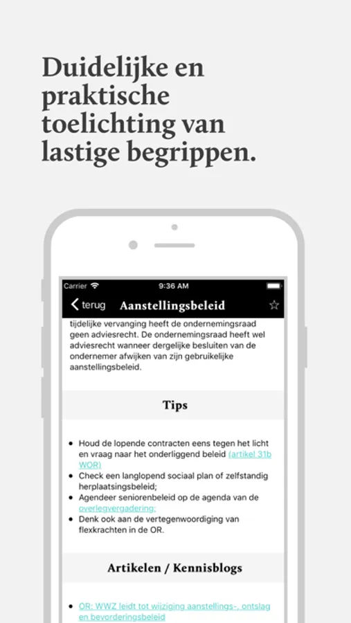Beschikbaar voor de smartphone of tablet zodat alle informatie tijdens een (overleg)vergadering direct beschikbaar is. De Ondernemingsraad weet nu nog beter wat zijn rechten zijn en wat hij kan, mag en moet.