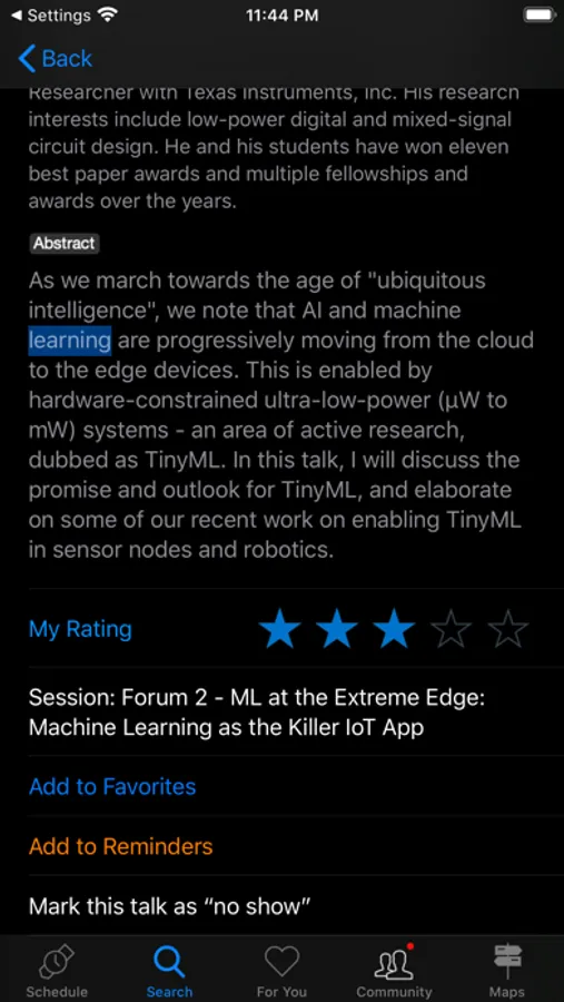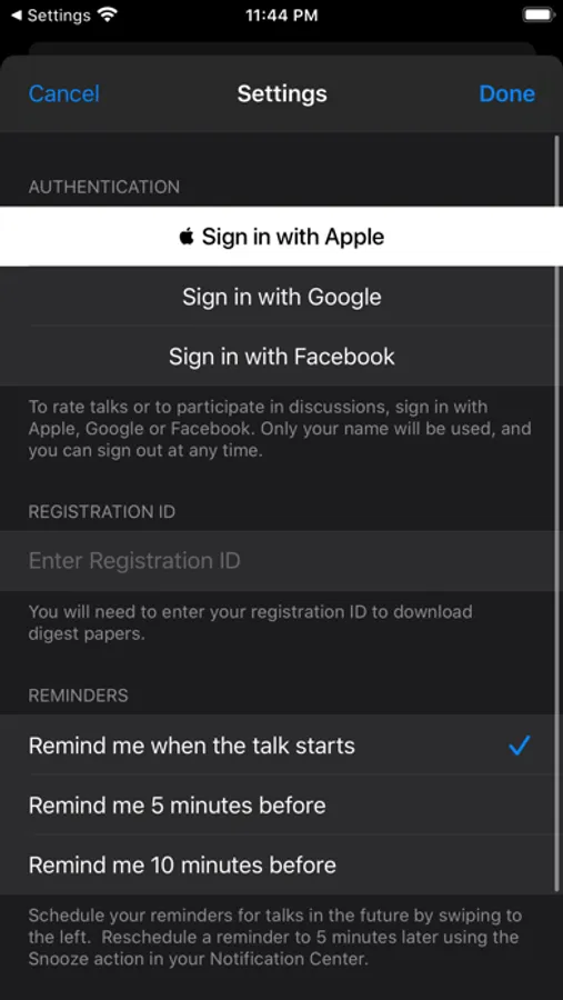 As a unique highlight, the app allows you to rate any of the talks in the entire program, either anonymously (without signing in), or after signing in using iCloud, Google, or Facebook.