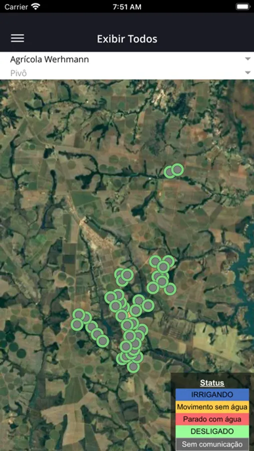 MAPA - visualize o mapa da fazenda com as áreas plantadas exibidas em cores de acordo com o nível de umidade do solo.