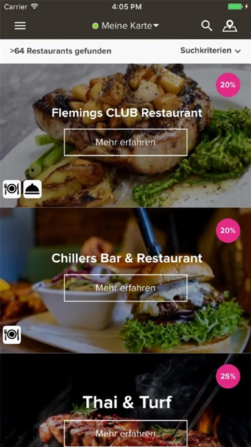 Die App bietet exklusive Deals in über 80 Top Restaurants in Frankfurt & Rhein Main Gebiet. Einmal eine Jahresmitgliedschaft erwerben und täglich über die digitale, personalisierte Karte in den Genuss von unterschiedlichen Vorteilen in den ausgewählten Restaurants kommen. Deals gehen von % auf Speisen, % bei Selbstabholung, % auf Spezialmenüs, Vorzugspreise und noch vieles mehr. Alle Konditionen und Restaurants werden in der App übersichtlich dargestellt und über die Suchfunktion findet man das passende Restaurant. Zum Kennenlernen gibt es eine kostenlose Probekarte für einen Monat.
