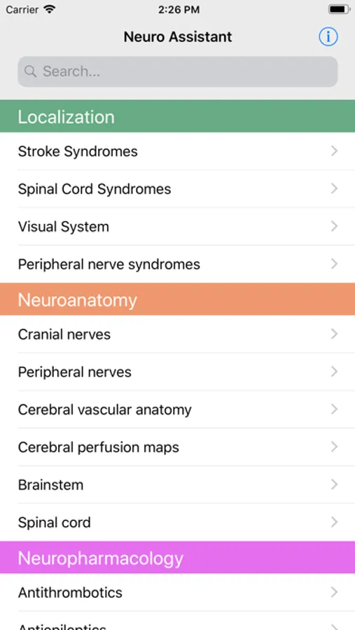The aim of this application is to assist in the everyday neurology, neurosurgery or neuroradiology practice by providing updated, correct, easily accessible and searchable content.