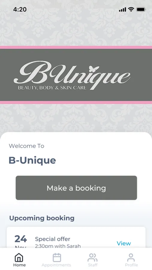 The B-Unique app makes booking your appointments and managing your loyalty points even easier. You're just a few taps away from feeling good and looking great!
