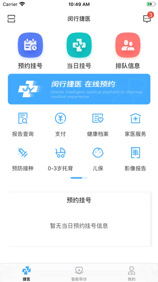 医疗卡信息管理、查看排队信息、预约挂号、在线支付、检验检查报告查看、医疗相关新闻资讯查看以及智能导诊等便捷就医的功能