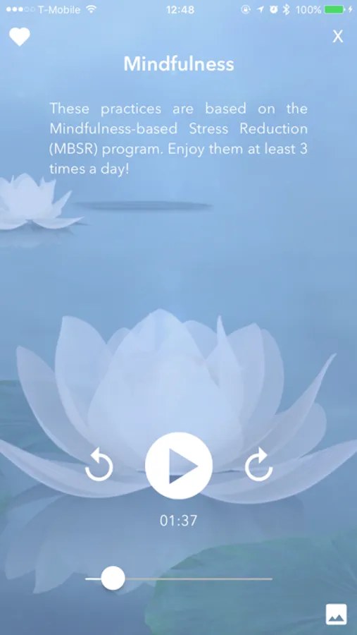 The calming practices of the app feature an introduction to mindfulness and short exercises that can be followed daily. Each practice provides voice instructions with soothing background video and music. The mindfulness exercises were developed by Renée Burgard, LCSW, Mindfulness & Health.