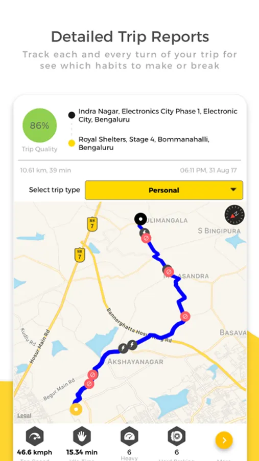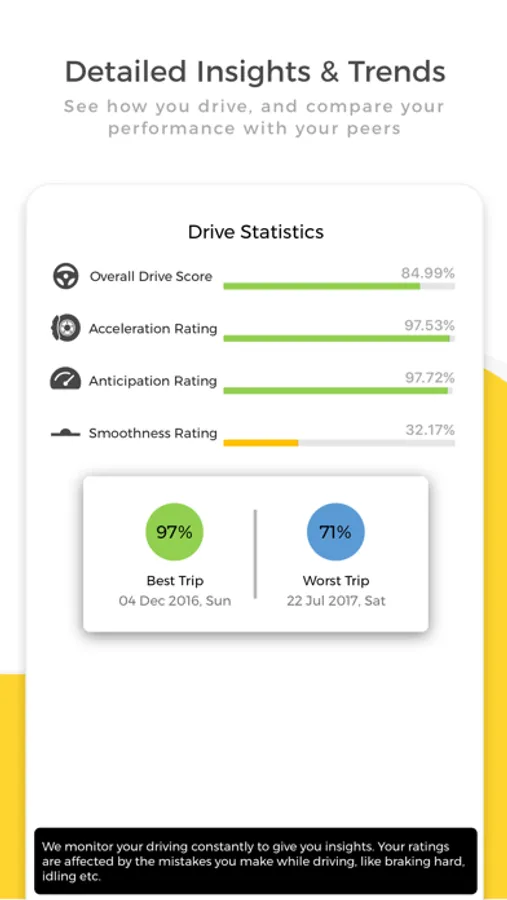 1. My Insights : Get driving analytics based on your trips and comparison with peers. Hence helps enhancing your driving skills