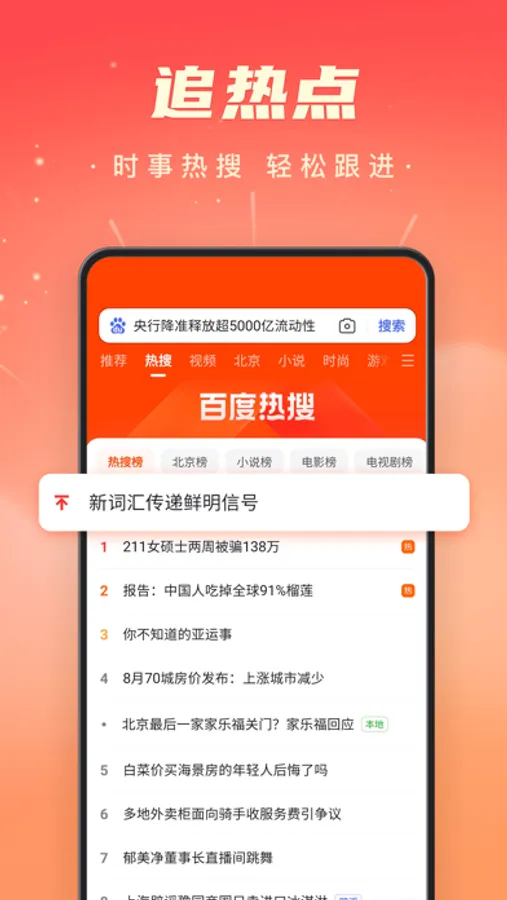 百度极速版,流畅体验不卡顿。追热榜资讯,刷优质视频,搜精准信息,看海量小说,个性推荐,免费体验。