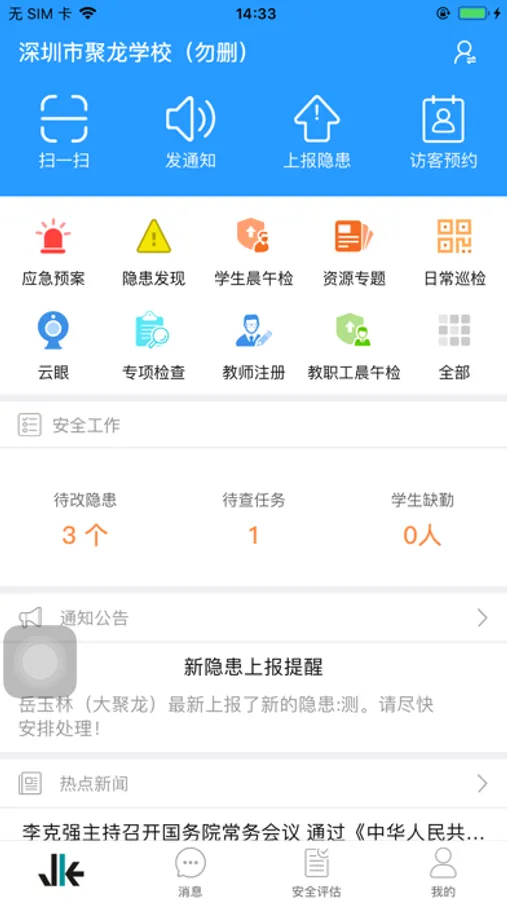 深圳聚龙:是基于移动互联网的校园安全综合管理平台。将校园安全知识与日常作息铃声相结合;在紧急情况下通过客户端启动校园广播实现应急指挥;将校园监控视频通过客户端接入手机实现远程实时查看;将安全及疏散演练实现电子化一键启动;并打通教育行政部门、学校到家长的信息通道,从而提高师生的自我安全防范意识及保护能力。