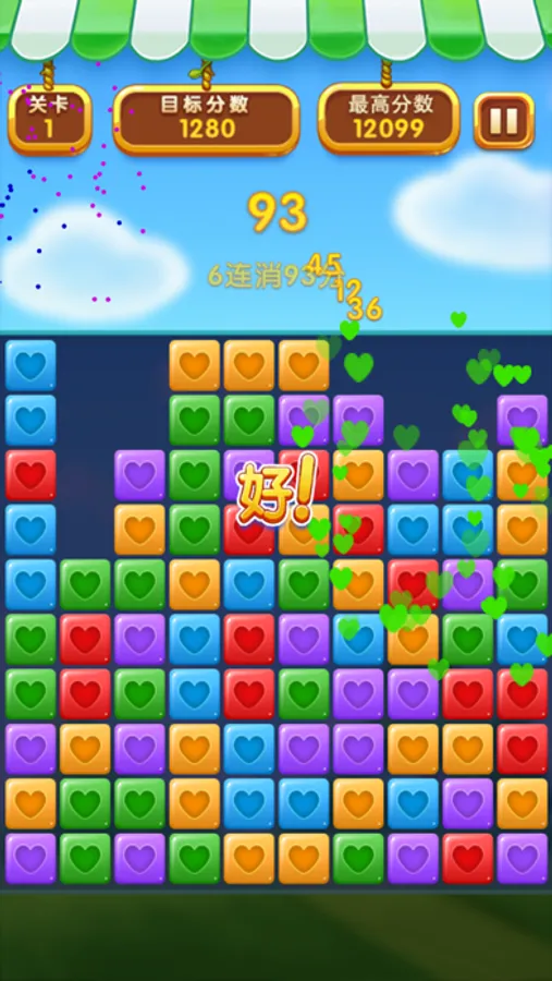 规则超简单,找到并消除两个以上的相同颜色的方块,相连的方块越多,得分越高。