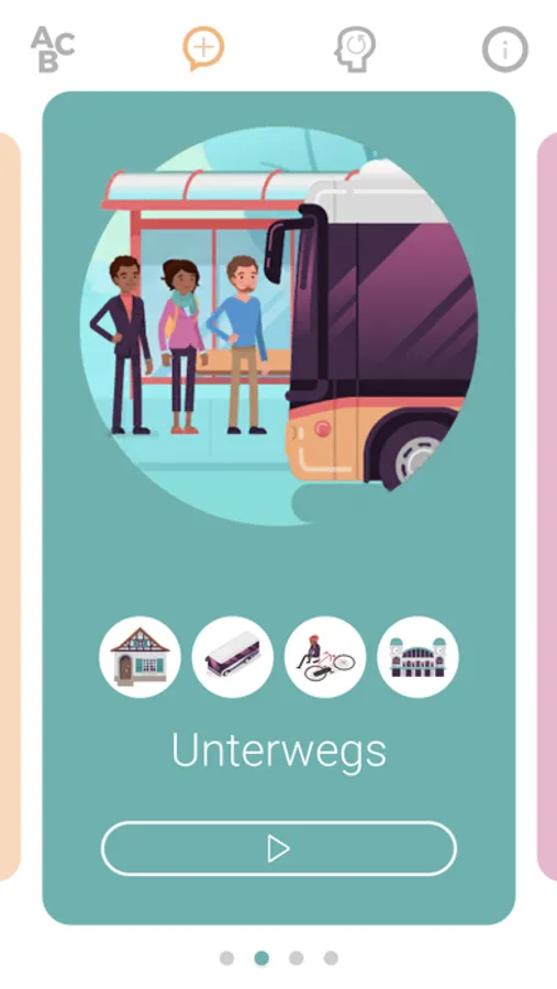 Klick dich durch viele lebensnahe Szenarien (zu Hause, beim Arzt, im öffentlichen Verkehr, am Bahnhof und im Supermarkt). Entdecke und lerne Wörter und Sätze, führe Dialoge und übe das Gelernte in Trainings!