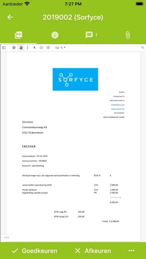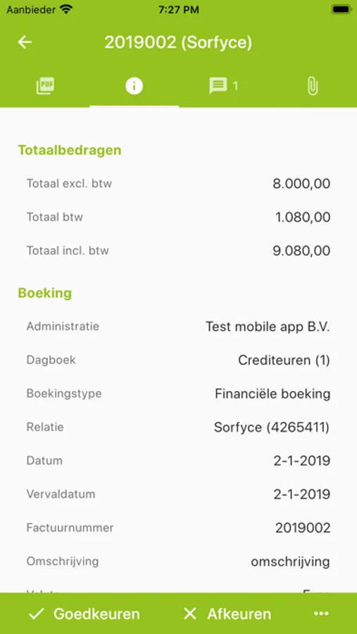 Met de app kun je bonnen en facturen digitaal goedkeuren. Facturen die ter beoordeling voor je klaar staan kun je in de app bekijken en autoriseren. Hierbij kun je opmerkingen toevoegen en eventuele bijlagen raadplegen.