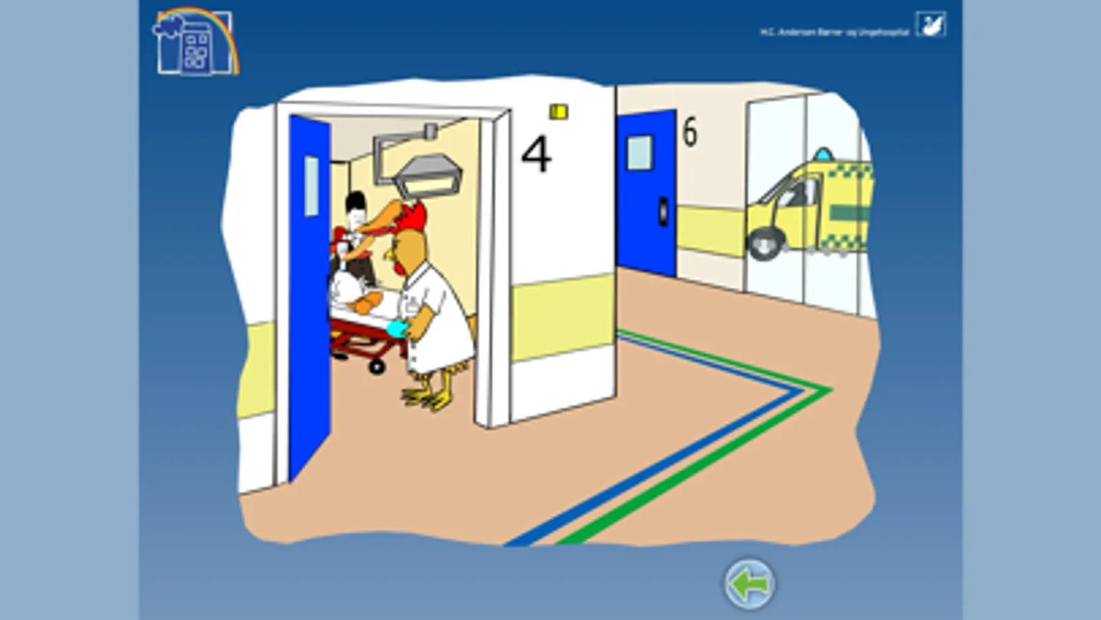 ”HC And - Del 2” er en introduktion til et generelt indlæggelsesforløb for de yngste børn, deres familie og omgangskreds. Informationen er med speak - af en barnestemme - og animation i genren ”Læring gennem leg med tablet/mobiltelefon/touch-skærm”.