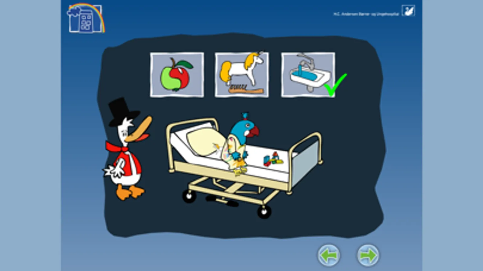 Børn i denne aldersgruppe lærer og erkender ved leg og konkret information. Indlagte børn kan hurtigt blive “fyldt op” med en masse information. Derfor er HC And bygget op af korte sekvenser i børnehøjde, så “nye” kan starte her.