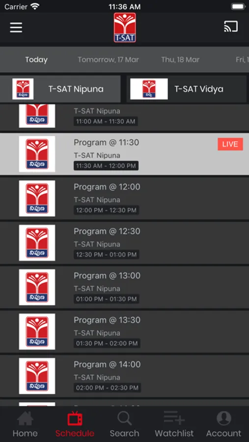 T-SAT uses GSAT 8 Satellite and telecasts four channels. T-SAT NIPUNA and T-SAT VIDYA cater to the distance learning, Agriculture Extension, Rural Development, Tele-Medicine and E-Governance requirements of the people of Telangana.