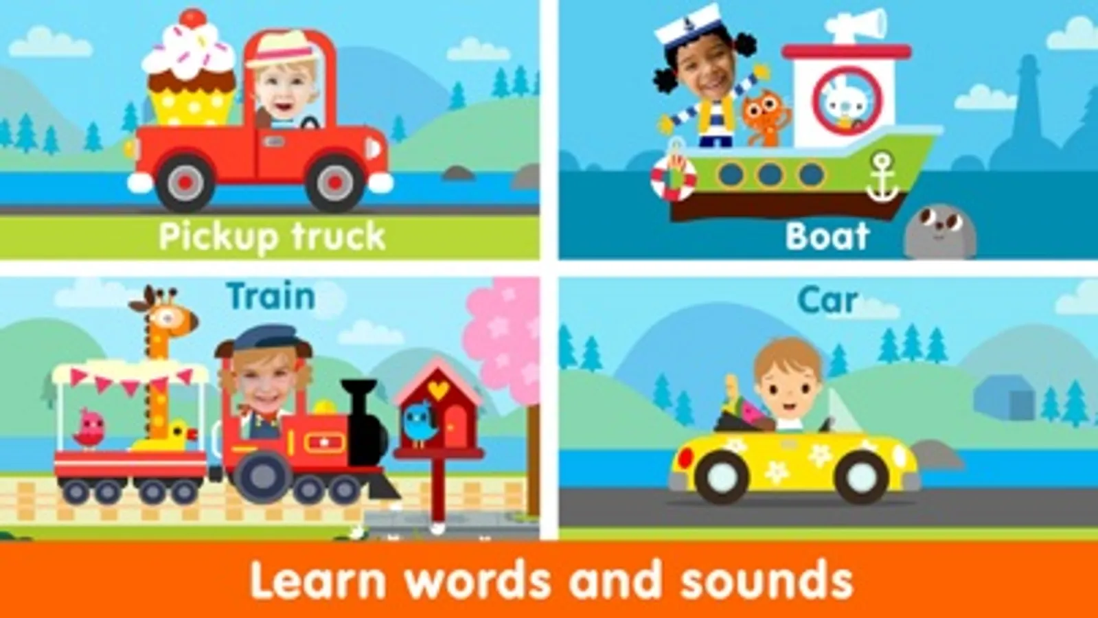 Your baby can get behind the wheel straightaway in this FREE version, which comes with the Train and Camper, and full customization options. Unlock all ten vehicles with a single in-app purchase which is behind a parent lock. Once unlocked with a single purchase, there are no further in-app purchases.