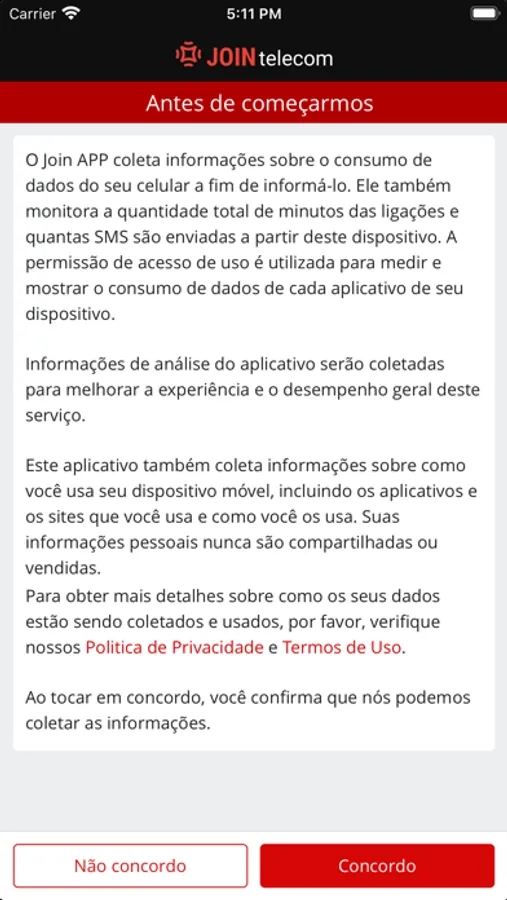 Join App lhe ajuda a tomar controle sobre seu consumo de dados e privacidade. Nosso aplicativo auxilia você a acompanhar o seu consumo e o consumo da sua equipe. Suas configurações podem ser administradas em nosso portal Join exclusivo.
