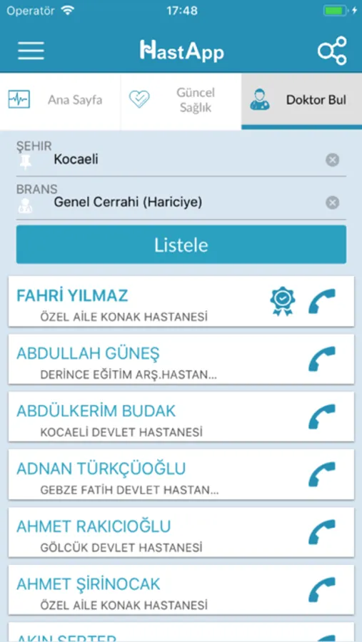 11. Uygulamaya yüklenen dosyalardaki verilere dayalı olarak bulunduğunuz bölgedeki en çok veri kaydı yapılan hekimleri görebilir, tercihlerinizde fikir sahibi olabilirsiniz.