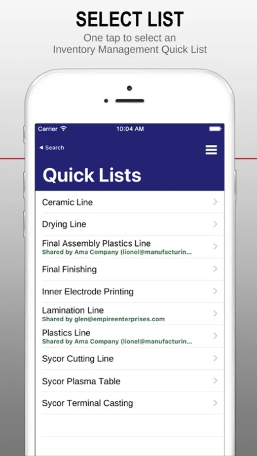 - Sharable Inventory Management Quick Lists for use by line personnel to count inventory and place replenishment orders
